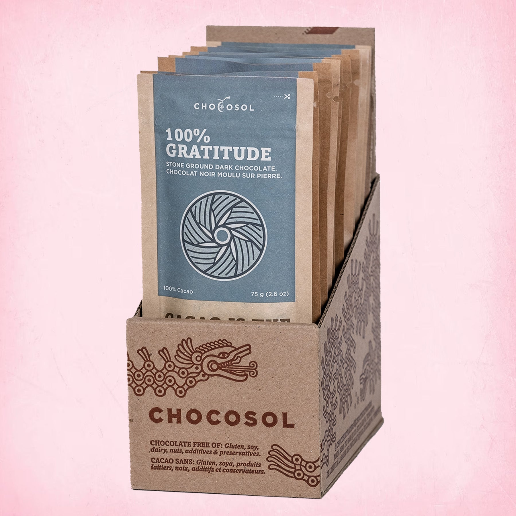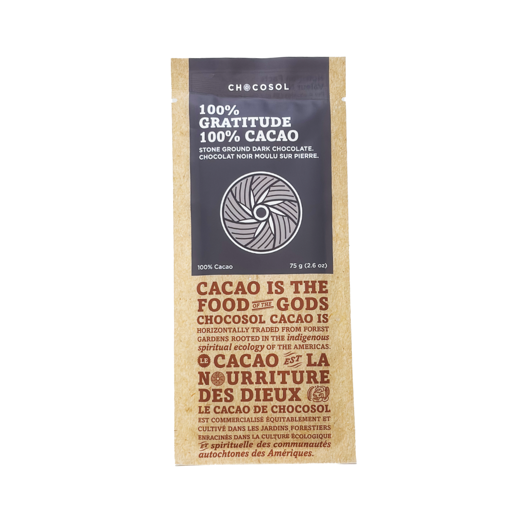 Our 100% Gratitude bar caters to the cacao purist. This single-ingredient chocolate is great for those avoiding all forms of sugar, those who simply prefer unsweetened chocolate in its richest form, and anyone looking for a delicious baking and cooking chocolate.