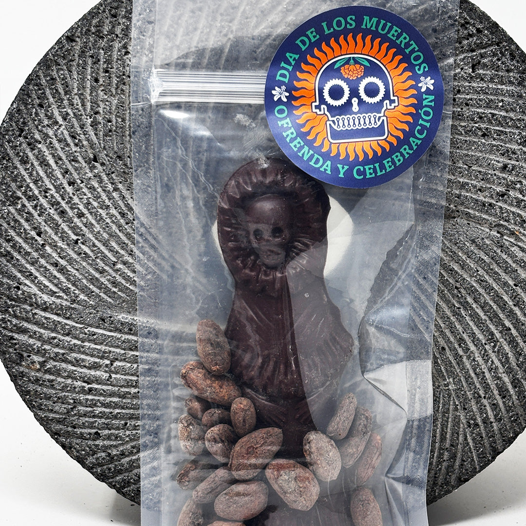 Handcrafted in small batches for the season of remembrance, these Día de los Muertos chocolate figures are a joyful and artful celebration of life. Each figure is created from our smooth Vanilla Sea Salt + Pumpkin Seed chocolate, made with cacao, raw cane sugar, cacao butter, pumpkin seeds, vanilla, and sea salt.