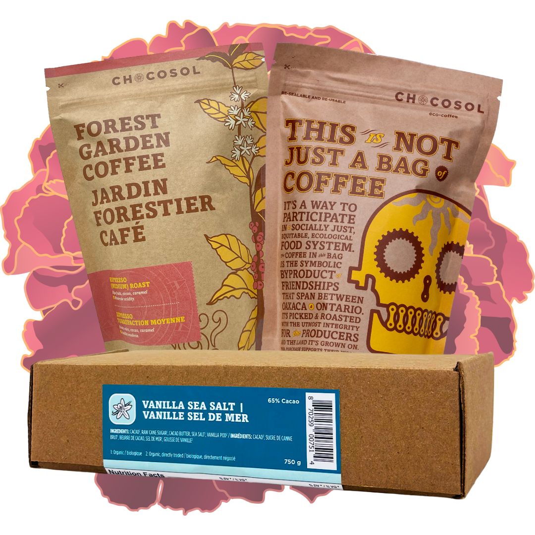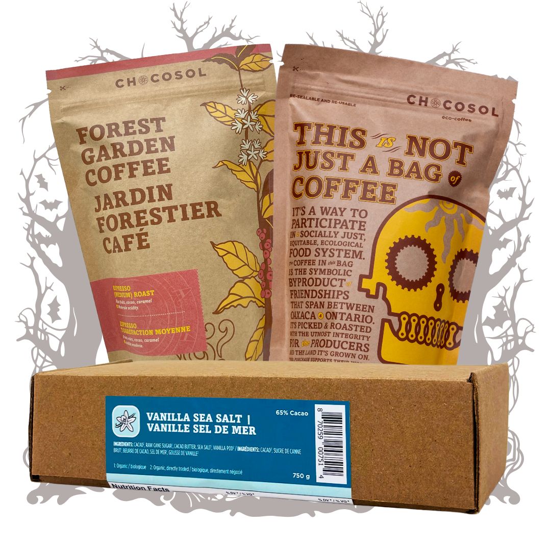 Awaken to the rhythm of the harvest with this cozy autumn bundle. The Harvest Moon Morning sets ChocoSol’s signature Vanilla Sea Salt chocolate — stone-ground with real vanilla pod— with two of our freshly roasted, shade-grown coffees: Oaxaca Profundo and Forest Garden Espresso. Together they create a morning ritual that honours the farmers, forests, and hands behind every bean. Perfect for both cooling mornings and slow sips by candlelight.